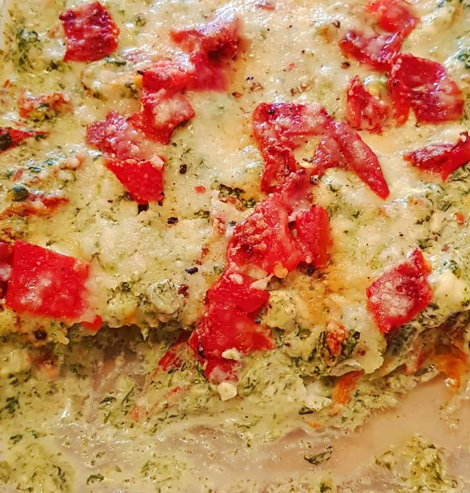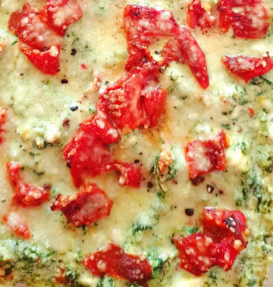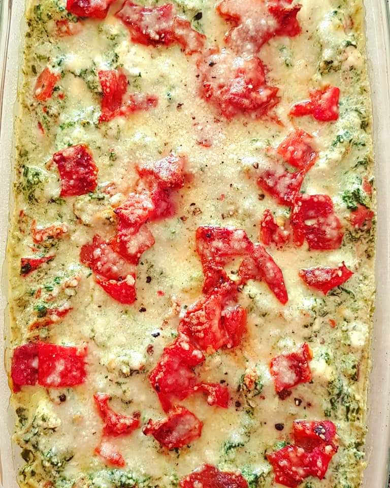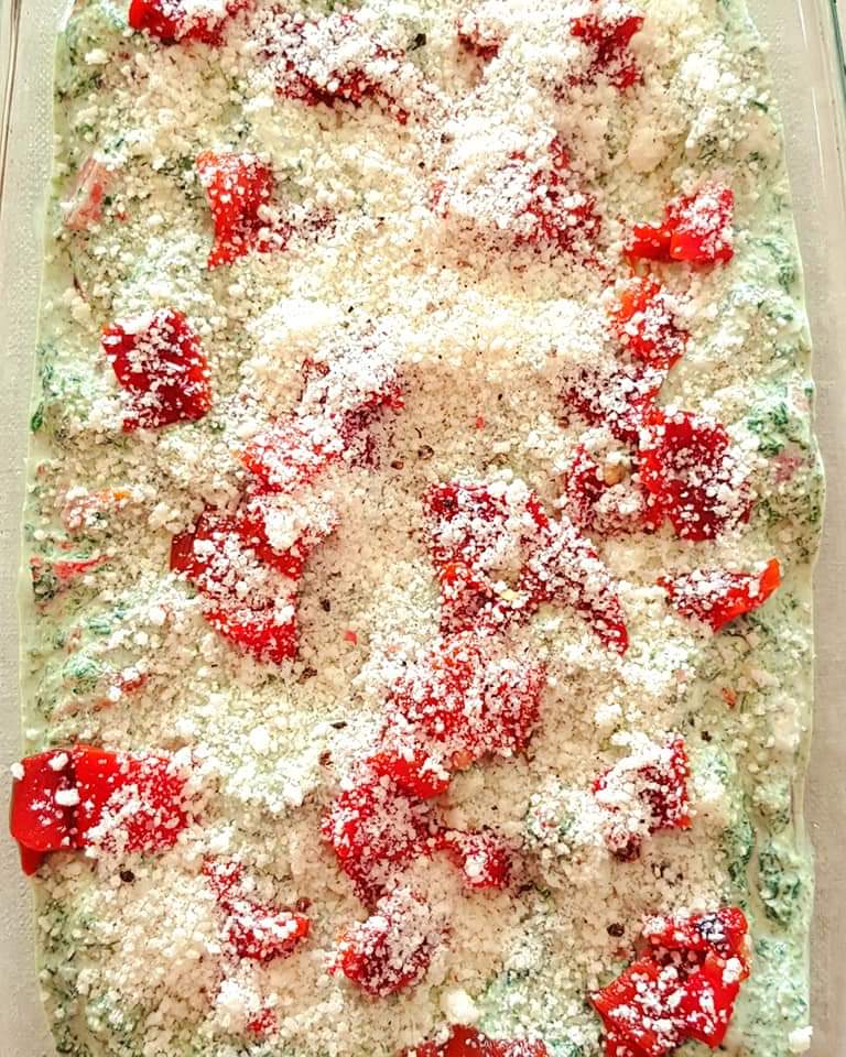Spanac cu ardei copți, cremă de brânză, brânză feta și muuult parmezan 😋… sau mai exact #hotspinachfetadip 😅