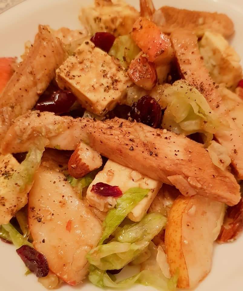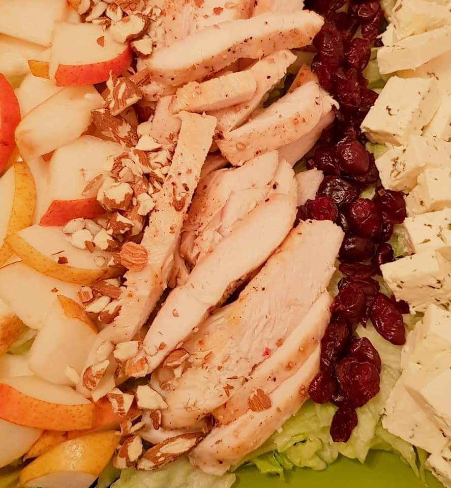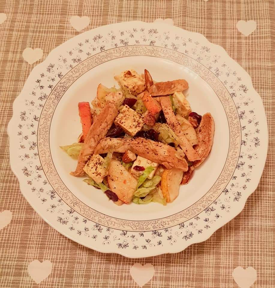 Pentru că e noiembrie și, pentru că, e toamana… azi vă prezint rețeta unei salate de toamnă 🙂 Autumn Chicken Salad e o salată delicioasă cu piept de pui, pere, merișoare, migdale, telemea și un dressing și la fel de delicios 🙂 Salata de toamnă cu pui nu e doar o salată delicioasă, e și una colorată, datorită ingredientelor pe care le conține. Pentru o viață sănătoasă și fericită mâncați cât mai colorat 🙂