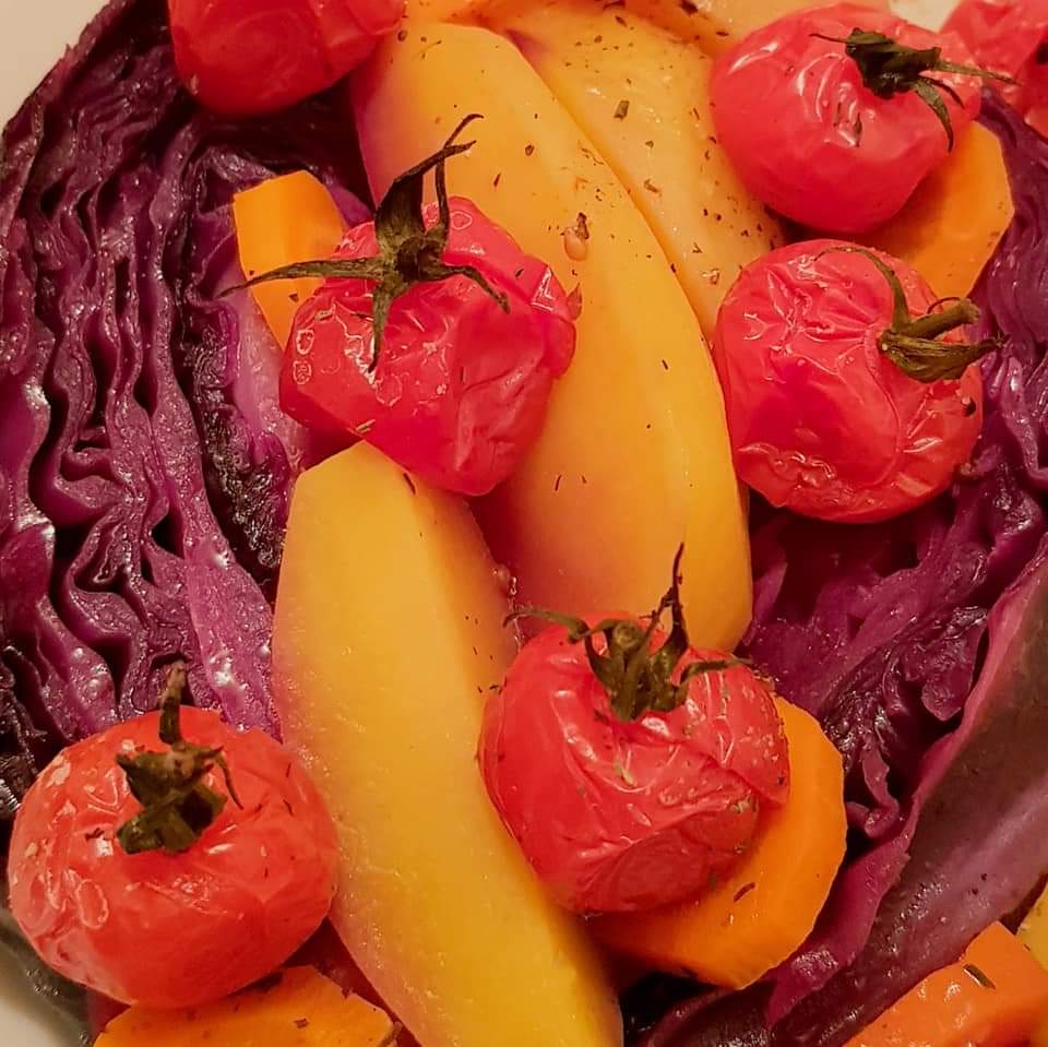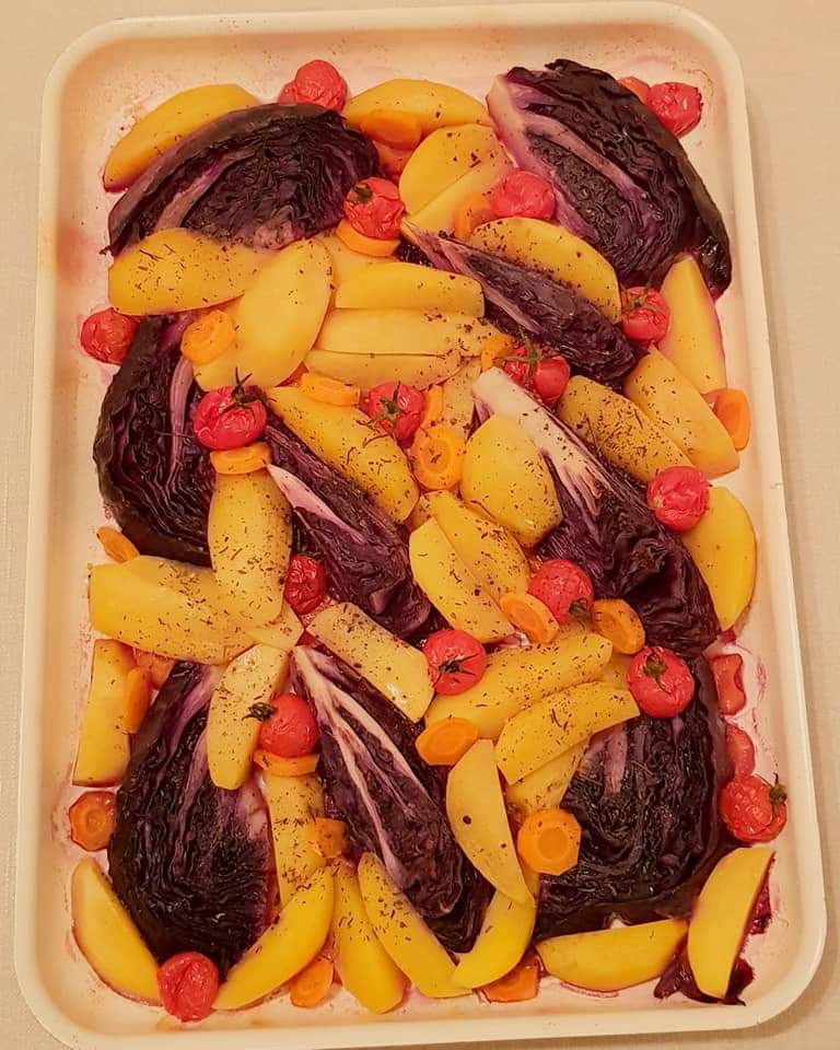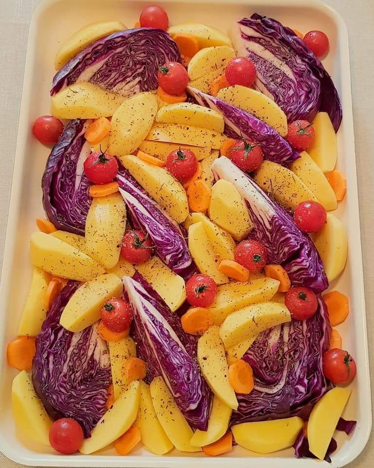 Legumele și fructele colorate sunt o adevărată sursă de sănătate. Roșu, galben, portocaliu și mov sunt culorile pe care vi le propun azi în farfurie prin această rețetă delicioasă de legume la cuptor. #colorsinmyplate