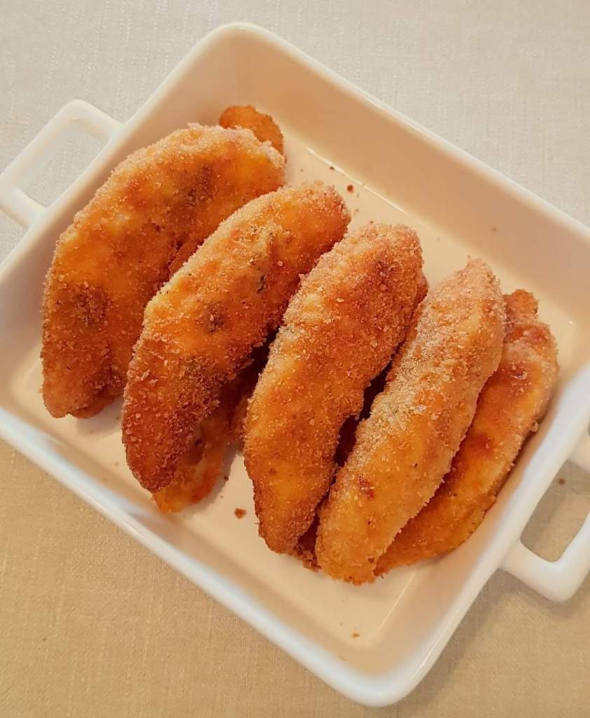 Se trece câte o bucată de piept de pui prin faină, apoi prin ou și apoi prin pesmetul panko și se frige în tigaia cu ulei încins, la foc mediu câte 4-5 minute pe fiecare parte până se rumenesc frumos. Se scot pe un șervețel absorbant. Apoi se aranjează frumos pe un platou. Sunt delicioase simple sau alături de diferite garnituri 😋