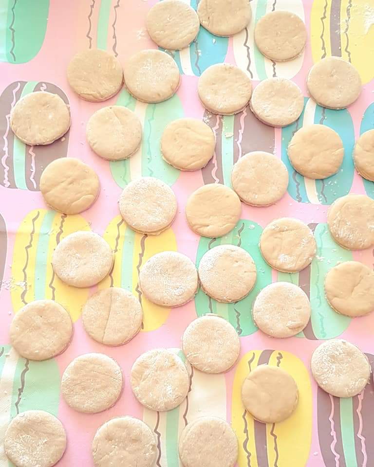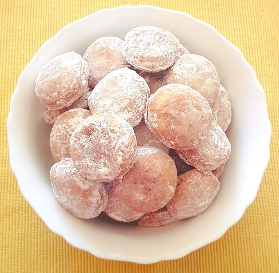 Se amestecă făina cu drojdia. Apoi se adaugă apa călduță în care am topit zahărul, esențele și coaja de portocală. Se frământă, adăugându-se pe rând uleiul. Se frământă până nu se mai lipește aluatul de degete. Apoi se acoperă și se lasă la dospit până își dublează cantitatea. Apoi se întinde o foaie din aluat și se decupează gogoșile cu ajutorul unui pahar. Se mai lasă la dospit pe masă încă 30min.