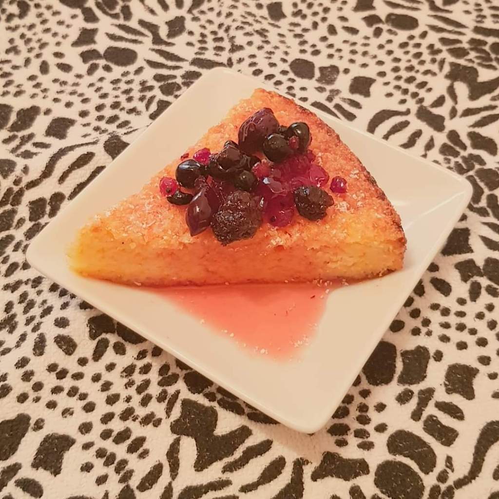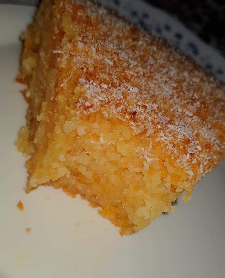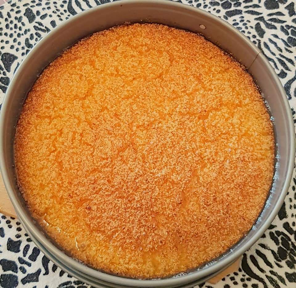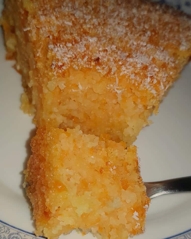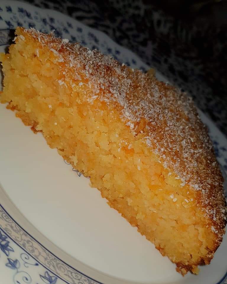 Se pune în cuptorul preîncălzit la 180° timp de 40-45 min, depinde de cuptor… Cât stă prăjitura în cuptor se prepară siropul. Se pune zahărul și sucul de lămâie într-un vas. Se adaugă apă și se aduce la fierbere, apoi se fierbe timp de 3 minute și se pune la răcit. Se toarnă peste prajitura fierbinte scoasă din cuptor. Nu vă faceți griji dacă prajitura va pluti în sirop. În câteva minute siropul se absoarbe în prăjitură.