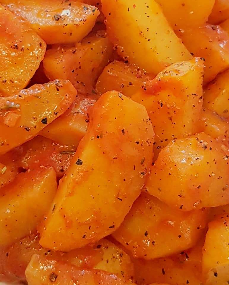 Cartofi vegani la cuptor cu suc de roșii și ierburi de Provence 😋