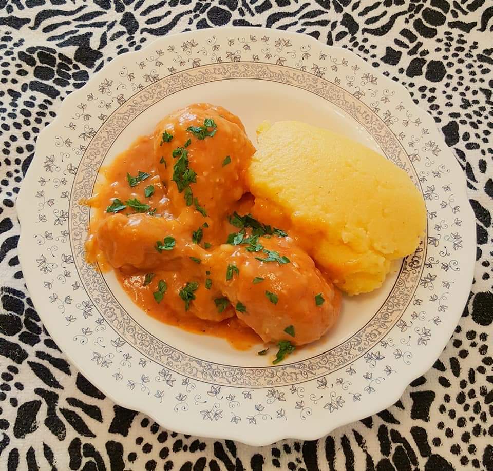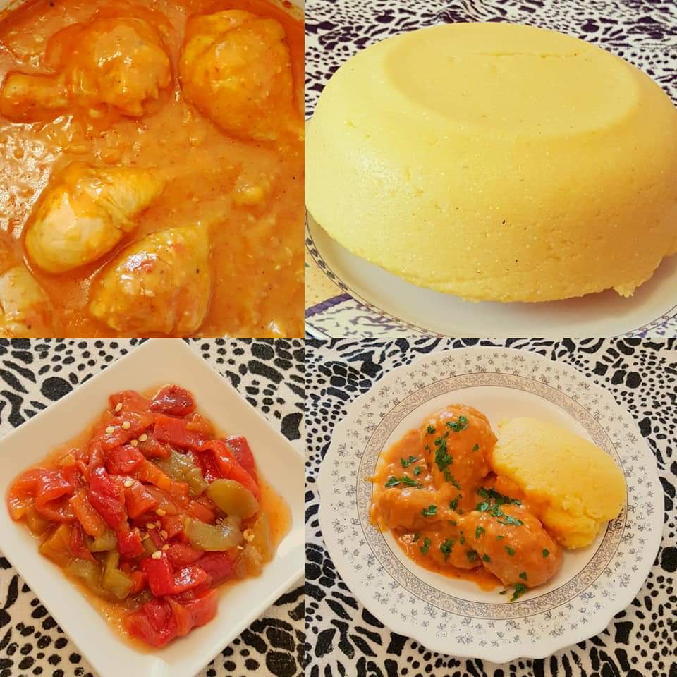 Ostropelul de pui este delicios alături de mămăliguță și o salată de ardei copți 😋