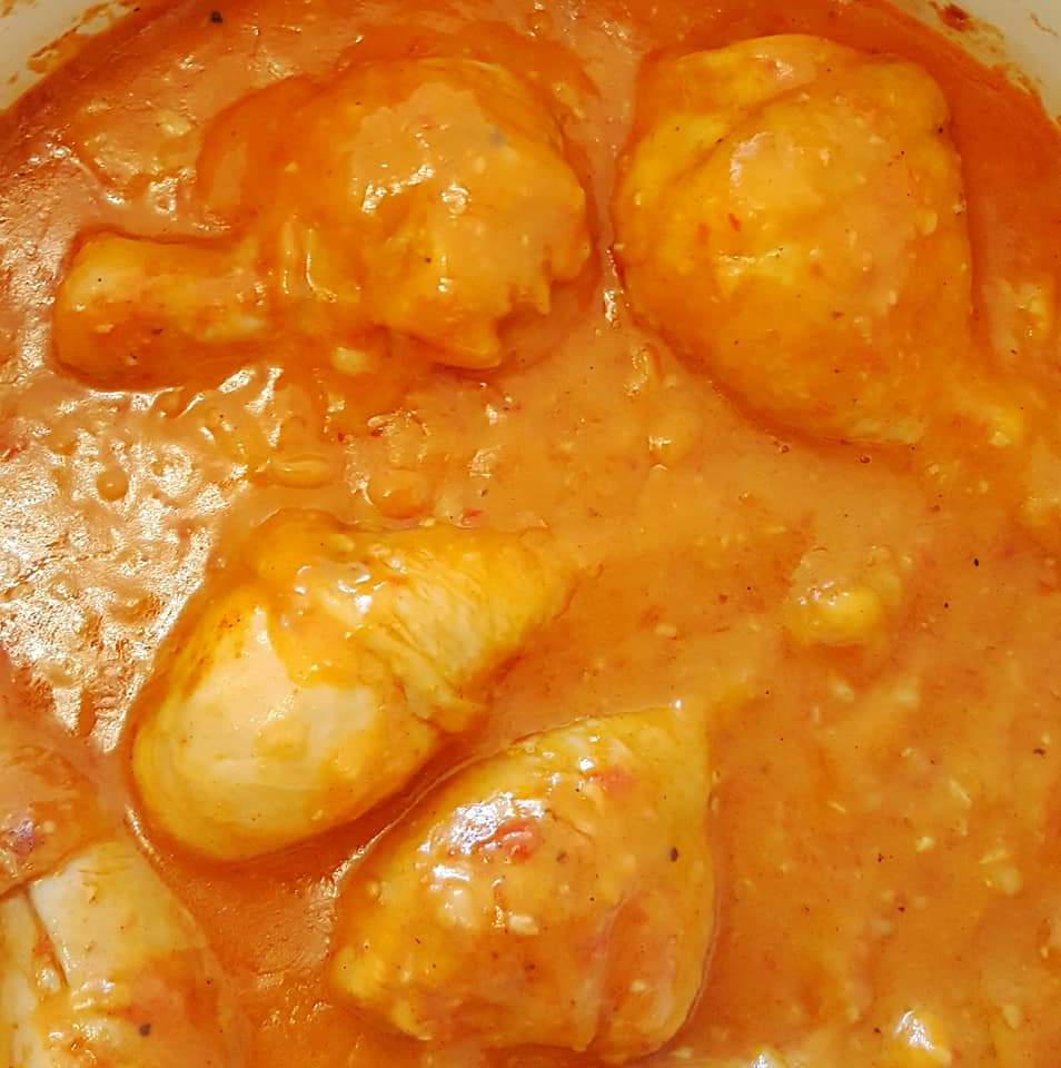 Pulpele se curăță, se spală, se sărează și se piperează în funcție de preferințe. Într-o cratiță se pune uleiul la încins. Se pun pulpele și se lasă câteva minute la prăjit pe toate părțile. Se adaugă boia și pasta de ardei. Apoi se adaugă apă cât să fie acoperite pulpele. Se lasă la fiert la foc mediu completându-se din când în când cu apă. Când sunt aproape gătite pulpele se adaugă usturoiul pisat. Se prepară un deres din faină și apă rece. Când pulpele sunt gătite, se ia cratița de pe foc și se toarnă ușor deresul, amestecându-se continuu pentru omogenizare, ușor să nu se zdrobească carnea. Apoi se pune iar pe foc cratița și se mai lasă 3-5 minute până când e gata sosul. Opțional se presară pătrunjel verde.