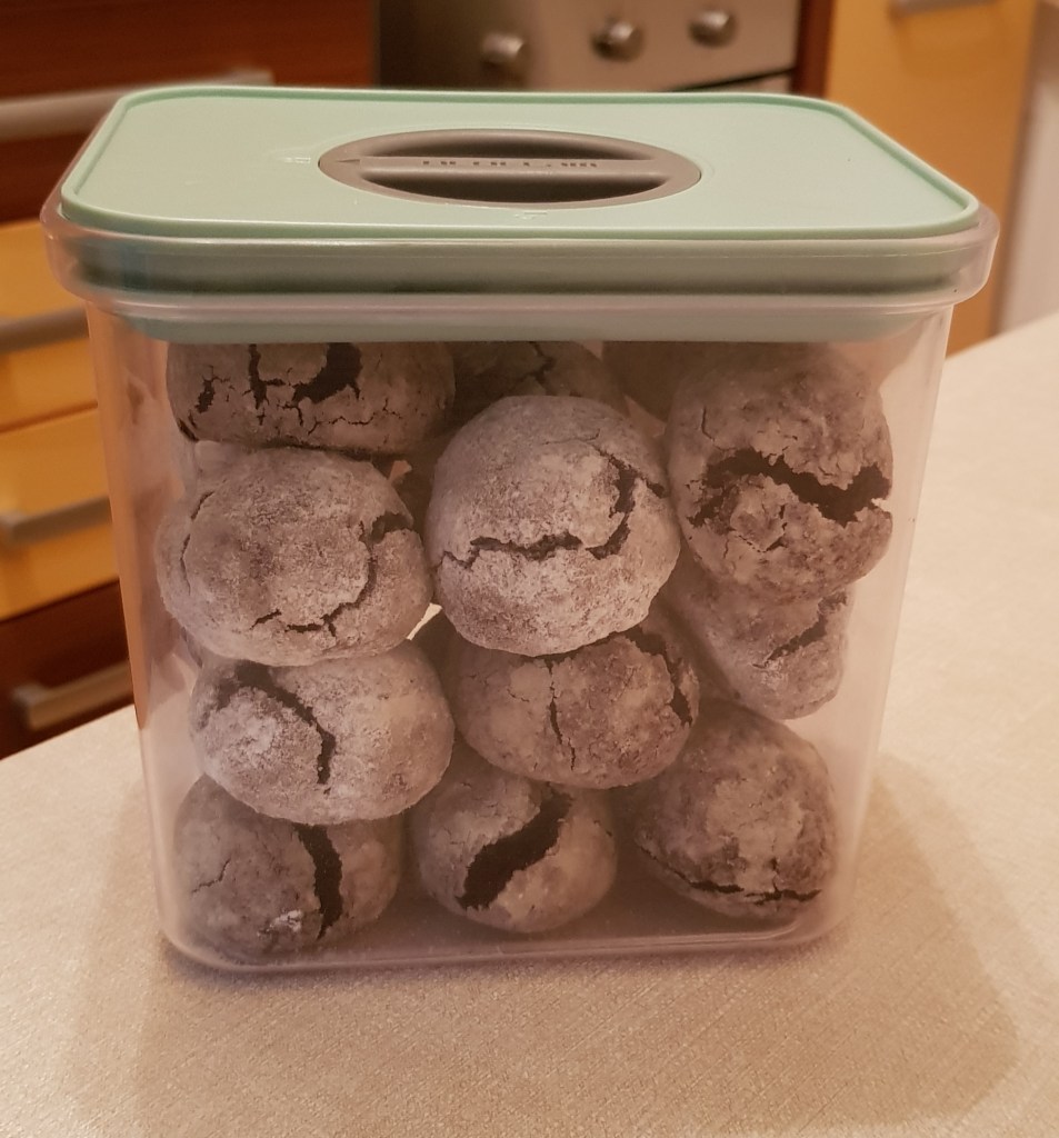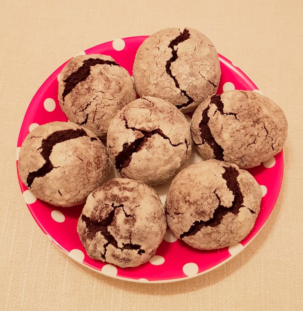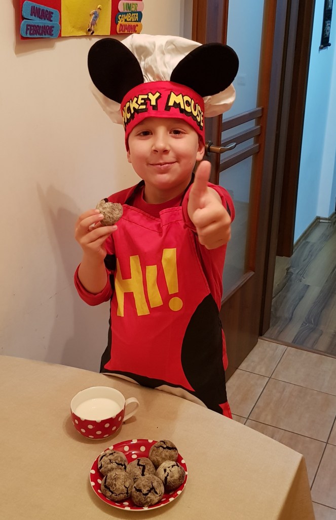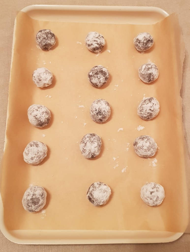 Se amestecă într-un bol faină cu praful de copt, praful de sare și cacao. Ciocolata împreună cu untul se topește la bain marie. Se bat ouăle cu zahărul până când se topește zahărul. Se adaugă esența de vanilie și amestecul de unt și ciocolată topită. Se amestecă pentru omogenizare. Se adaugă amestecul de făină, praf de copt, sare și cacao pe rând. Se mixează încet, cu foarte multă grijă. Aluatul este foarte gros. Apoi se pune aluatul obținut 15 minute la congelator. Se modelează biluțe din aluat. Apoi se trec prin zahăr pudră. Se pun într-o tavă tapetată cu hârtie de copt, la distanță una de cealaltă. Se coc în cuptorul preîncălzit la 180° pentru 15 minute.