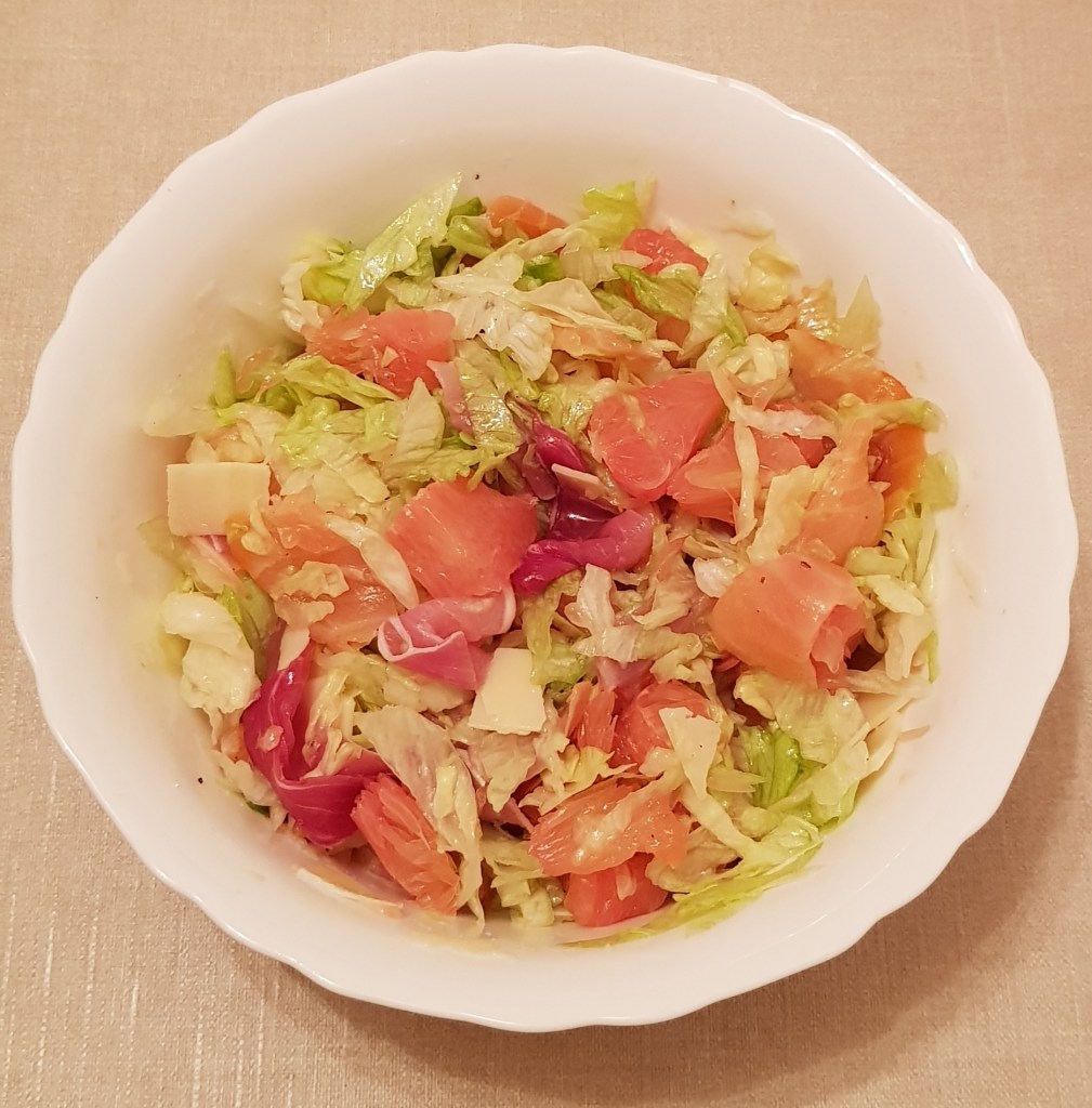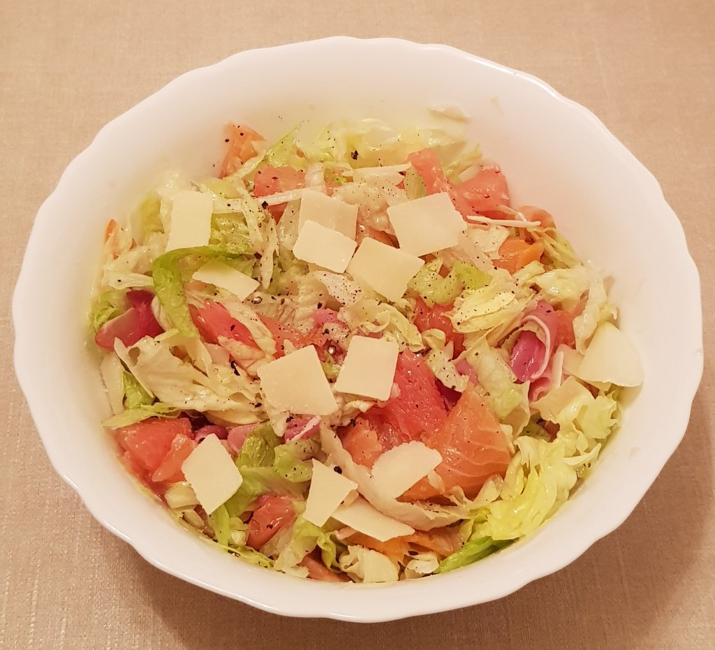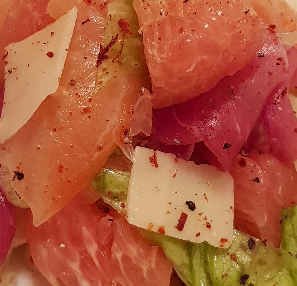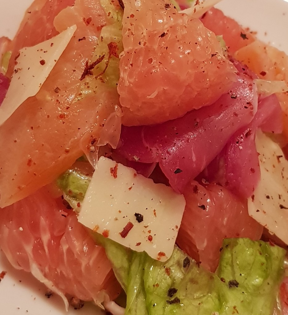 Salată cu pomelo roșu, somon afumat, șuncă și parmezan 😋