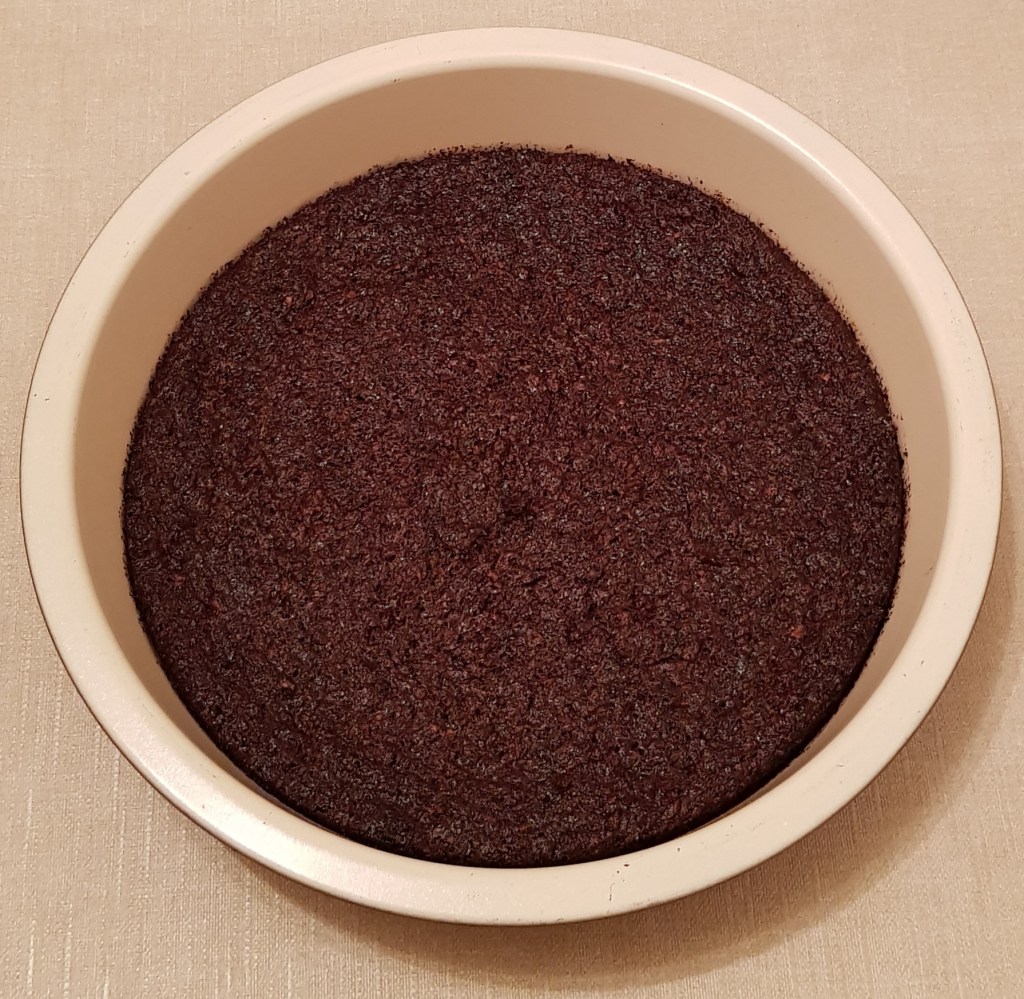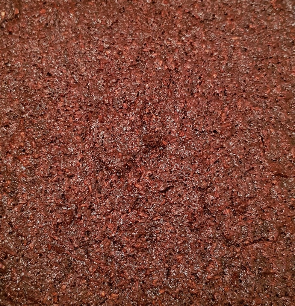 Apoi se pune compoziția într-o tavă de 20×25 cm tapetată cu hârtie de copt. Se nivelează frumos și se pune în cuptorul preîncălzit la 160° pentru 60 de minute.