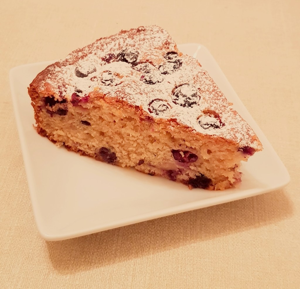 Într-un bol se pun ouăle, zahărul, uleiul de răpiță, coaja de lămâie, iaurtul și sucul de lămâie. Se amestecă cu ajutorul unui mixer până când obtinem o compoziție omogenă. Se adaugă făina, praful de copt si praful de sare. Se amestecă pentru omogenizare. Afinele se spală și se scurg de apă foarte bine. Un sfert din afine se păstrează, iar celelalte se pun într-un bol și se adaugă peste ele o lingură de făină. Se amestecă foarte bine, apoi se pun afinele în compoziție cu tot cu surplusul de făină. Se amestecă ușor cu o lingură de lemn. Se unge tava și pereții tăvii foartr bine cu unt. Se adaugă compoziția în tavă și se nivelează frumos.