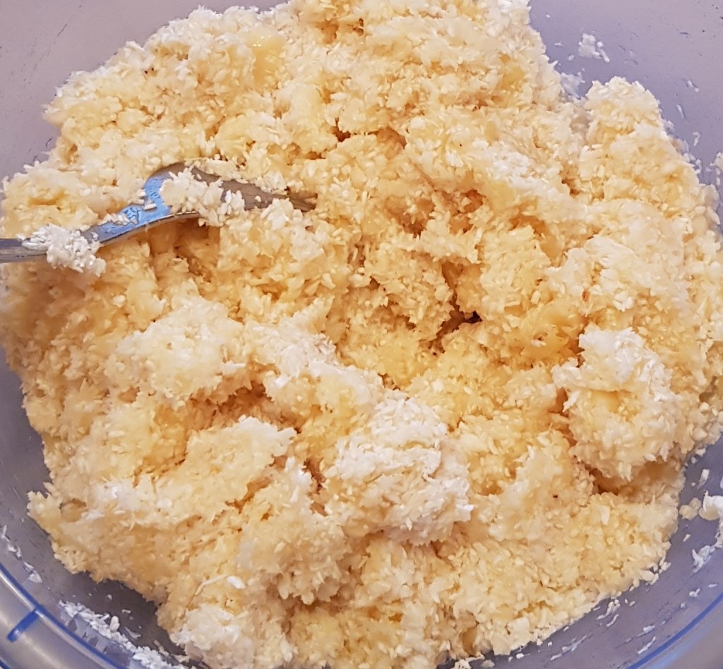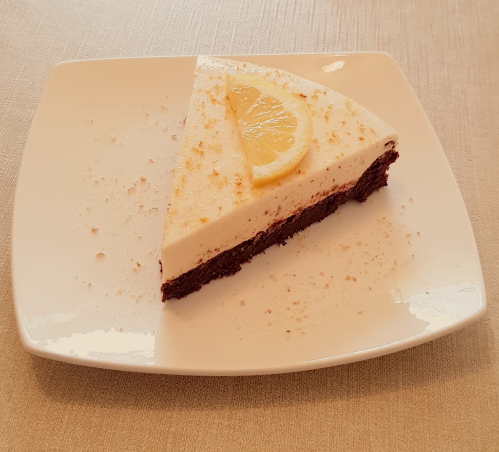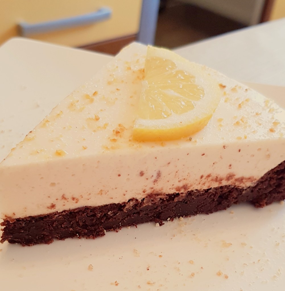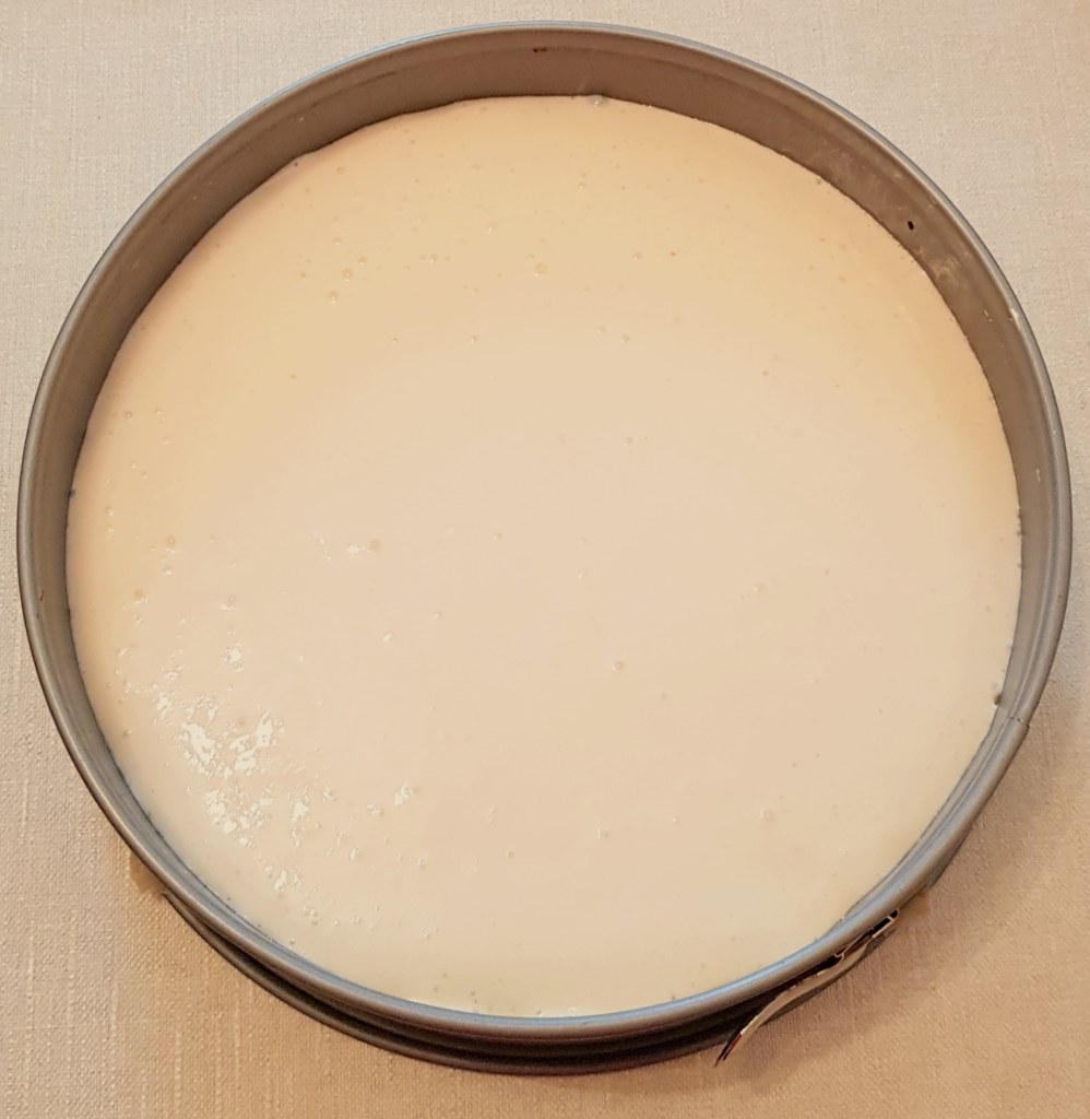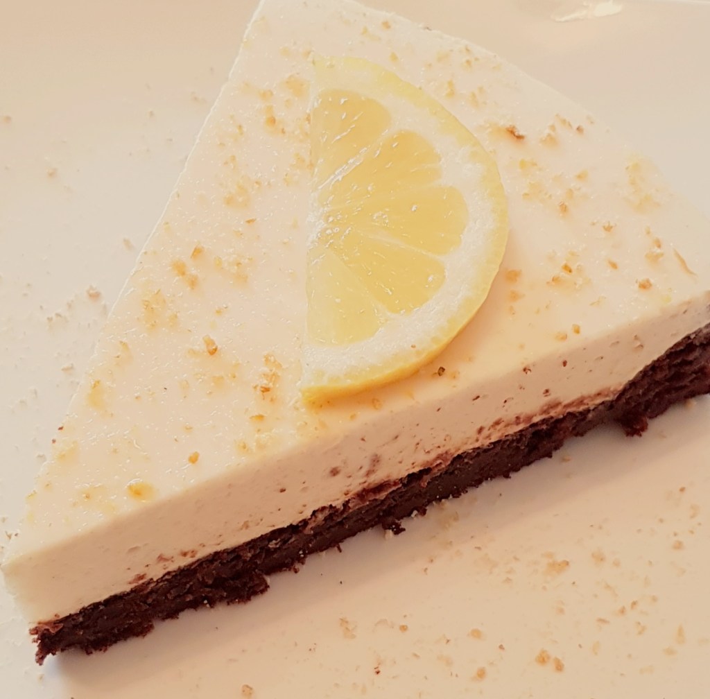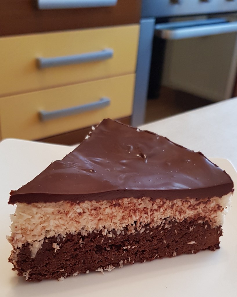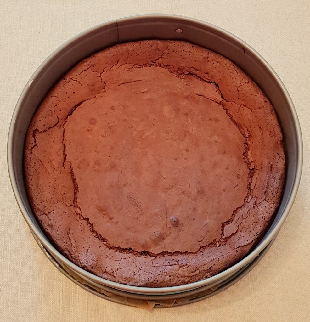 Pentru blat se adaugă în vasul unui robot de bucătărie migdalele, curmalele, fulgii de cocos, cacao, praful de sare. Se mixează până se obține fărâmituri. Apoi se adaugă 2-3 linguri de apă și se mai mixează până se obține un amestec lipicios. Se adaugă aluatul într-o formă cu pereți detașabili. Se presează ușor cu o lingură, apoi se pune tava deoparte până la prepararea cremei.