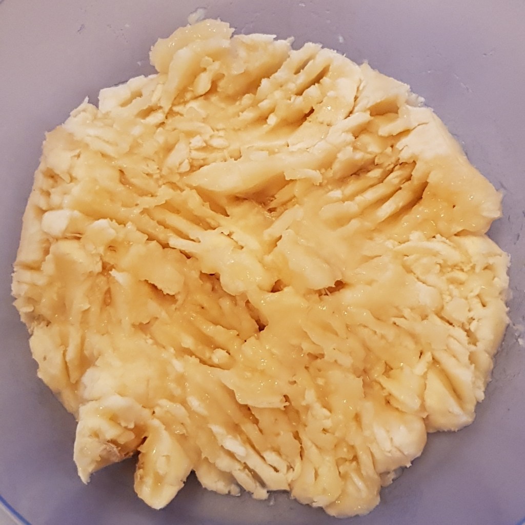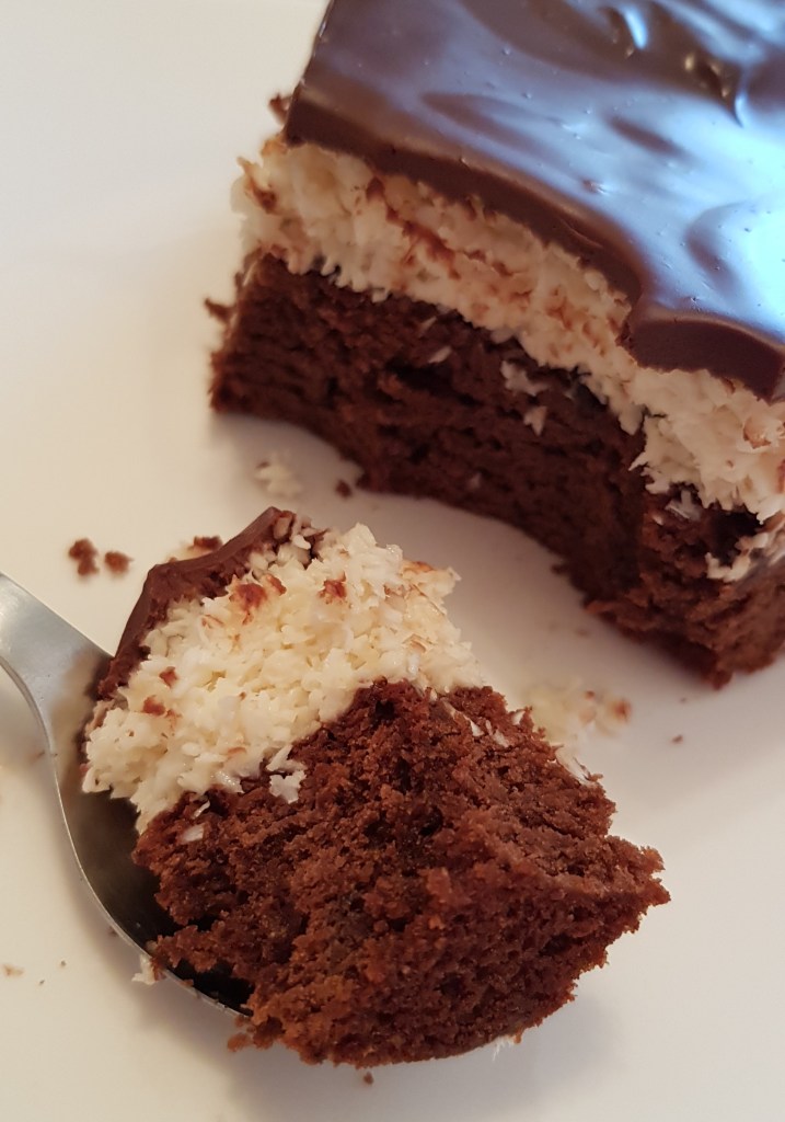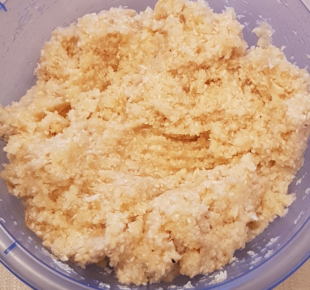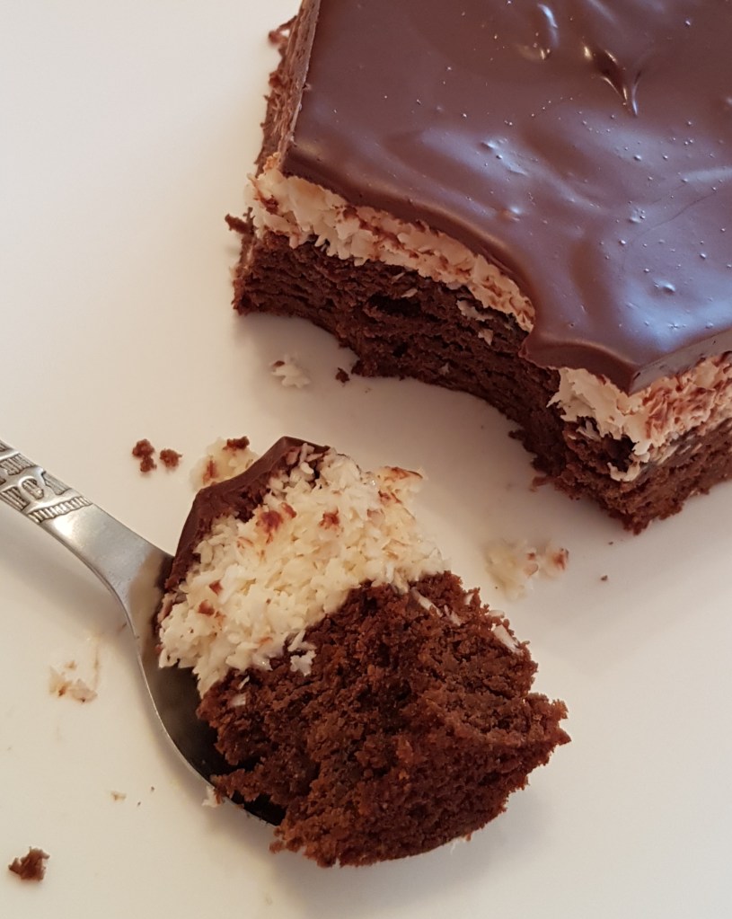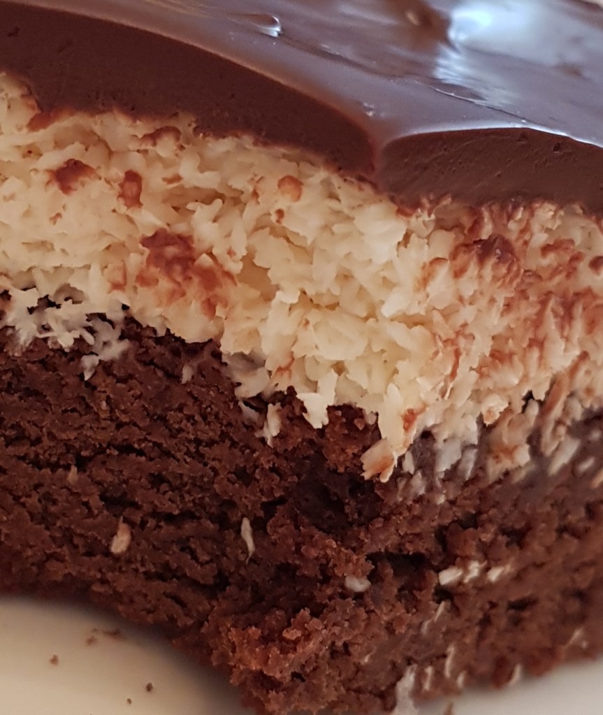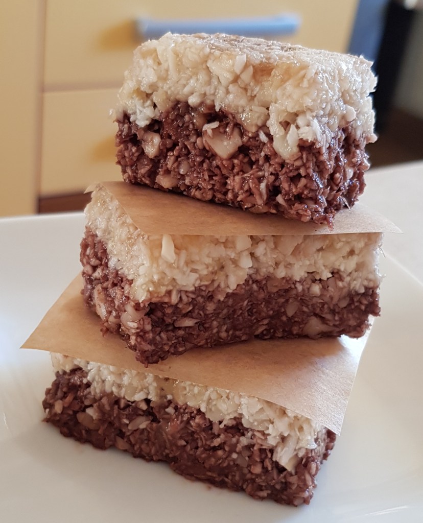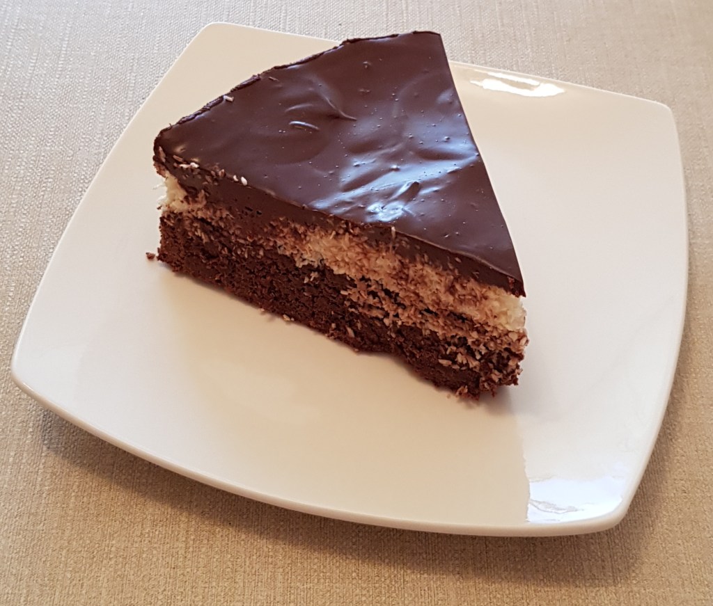 Pentru blat se adaugă în vasul unui robot de bucătărie migdalele, curmalele, fulgii de cocos, cacao, praful de sare. Se mixează până se obține fărâmituri. Apoi se adaugă 2-3 linguri de apă și se mai mixează până se obține un amestec lipicios. Se adaugă aluatul într-o formă cu pereți detașabili. Se presează ușor cu o lingură, apoi se pune tava deoparte până la prepararea cremei.