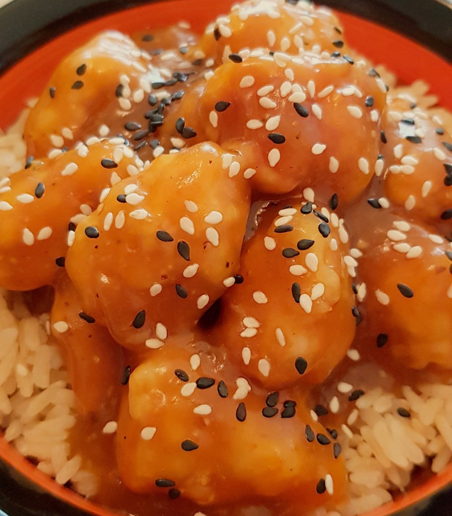 Pentru plating am folosit semințe de susan alb și negru. Este delicios alături de o garnitură simplă de orez. Eu l-am savurat alaturi de puțin orez integral fiert în puțină apă cu sare 😋