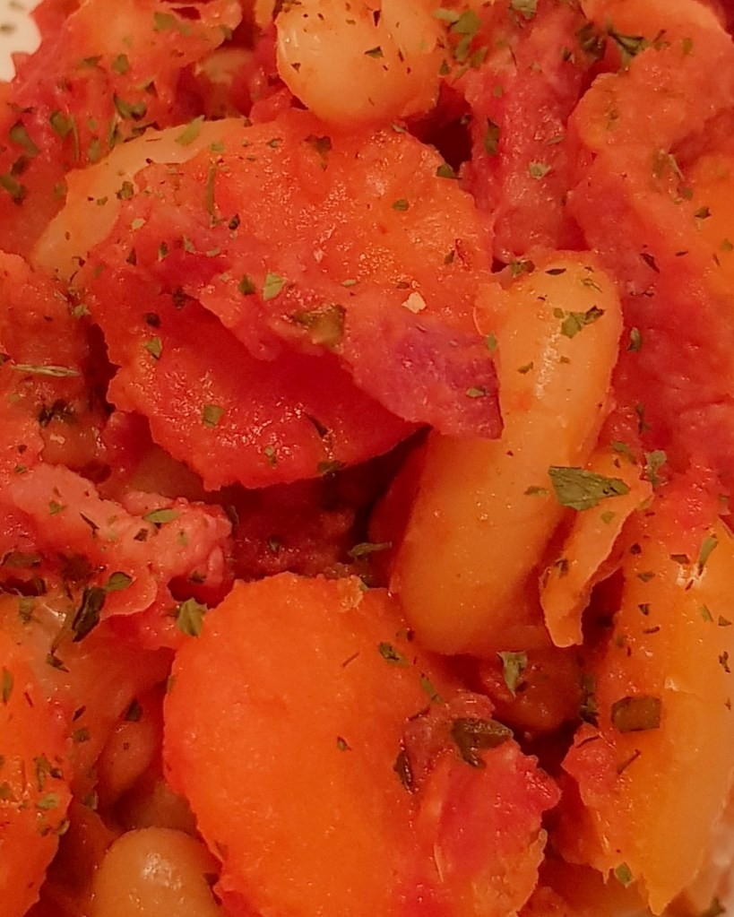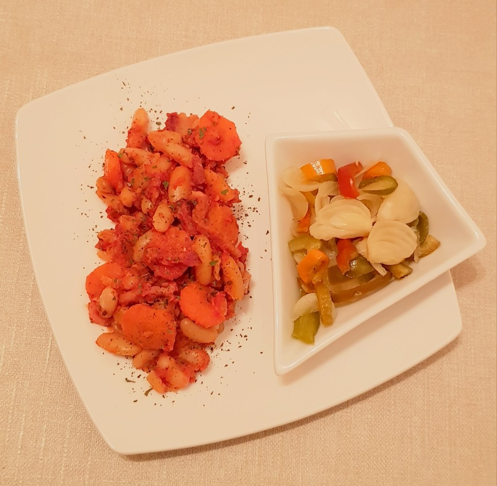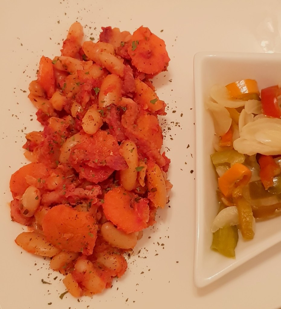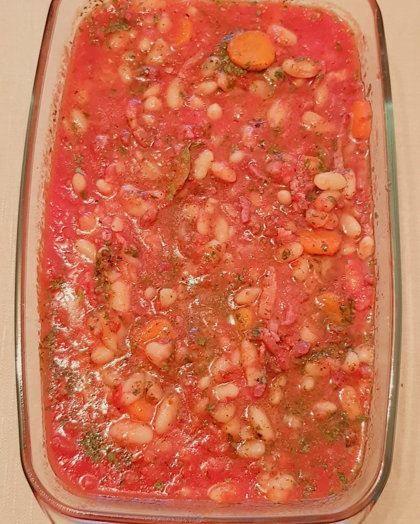 Azi vă propun o rețetă de iahnie de fasole varianta mai modernă și poate mai sănătoasă, dar la fel de delicioasă 😋 Am înlocuit ciolanul afumat cu cubulețe de bacon afumat și am scăzut-o la cuptor. Și, bineînțeles, i-am făcut și plating 🙂
