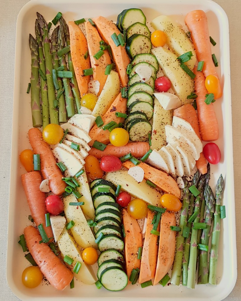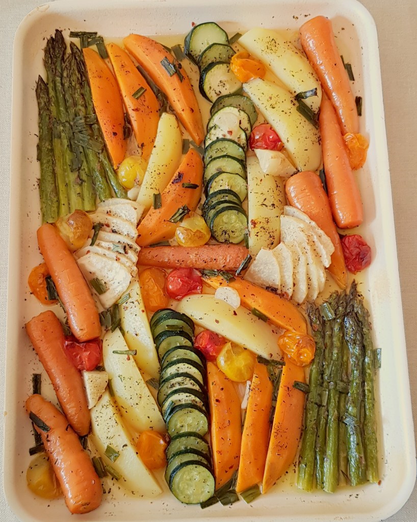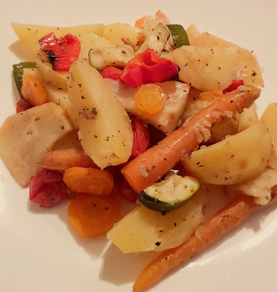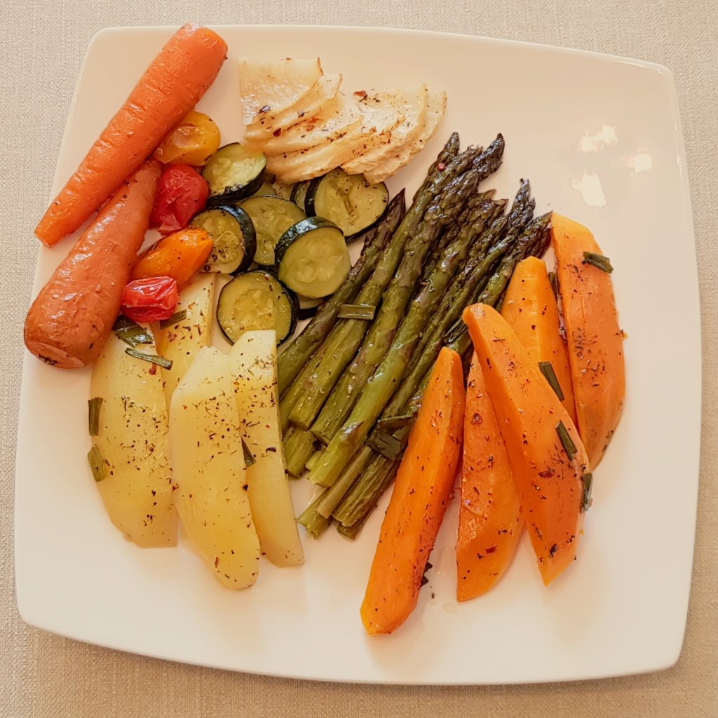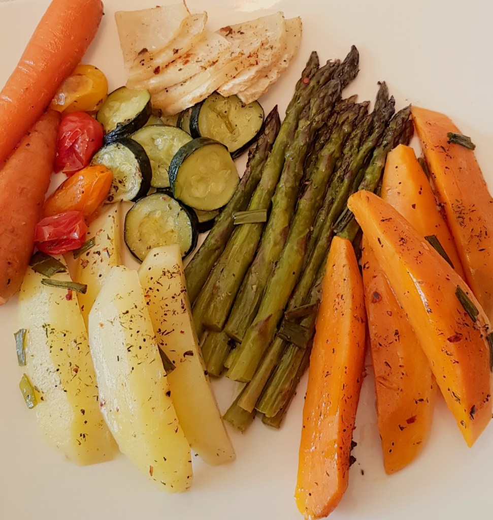 Legumele la cuptor sunt delicioase simple, pe post se garnitură sau alături de salata preferată. Eu le prefer alături de o salată delicioasă 😋