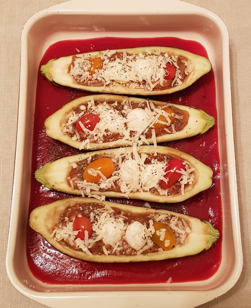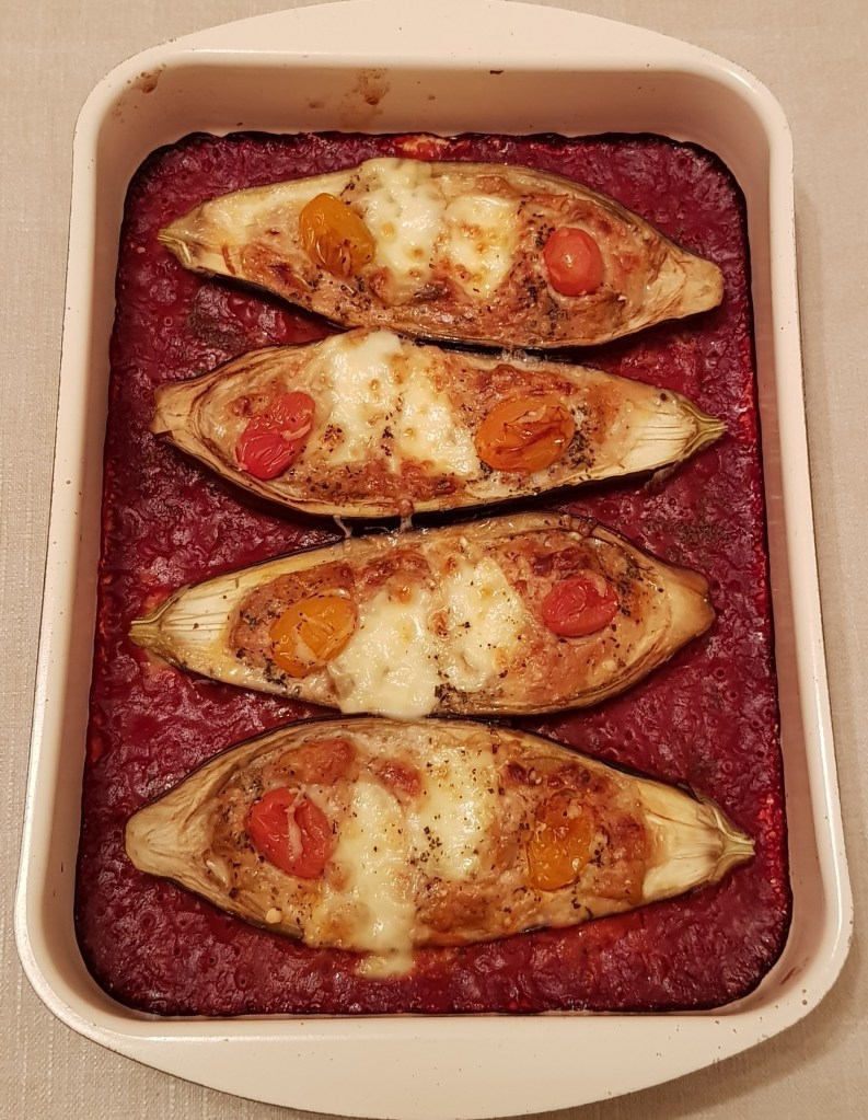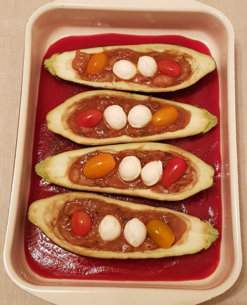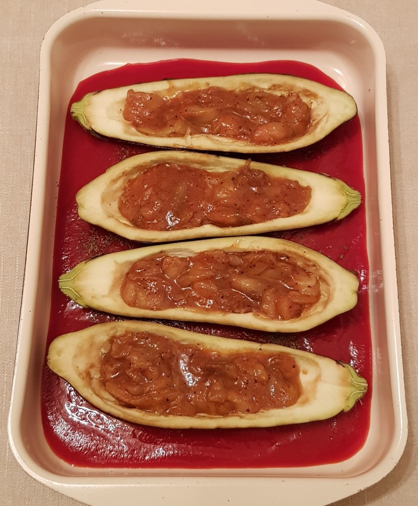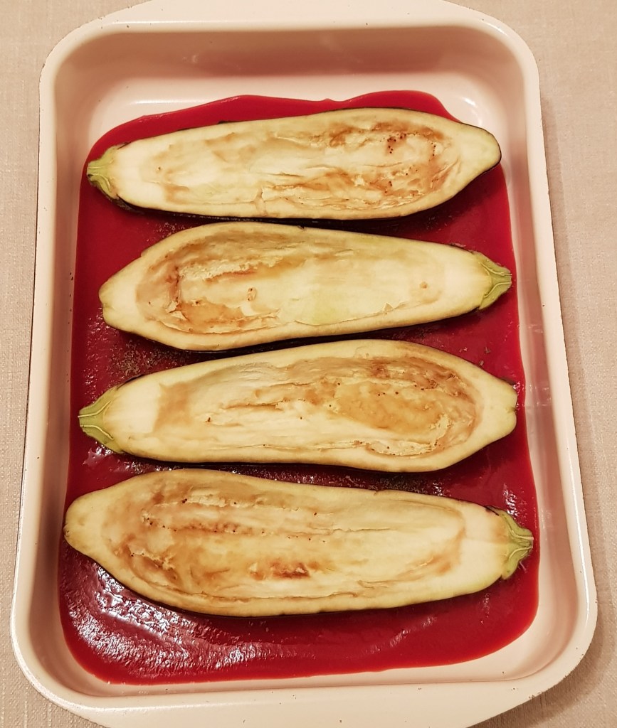 Se amestecă și se adaugă 150ml apă. Se acoperă tava cu folie de aluminiu și se pune în cuptorul preîncălzit la 200° pentru 30 minute. Apoi se scoate folia de aluminiu și se adaugă oțetul balsamic. Se mai lasă în cuptor aproximativ 10 minute.
