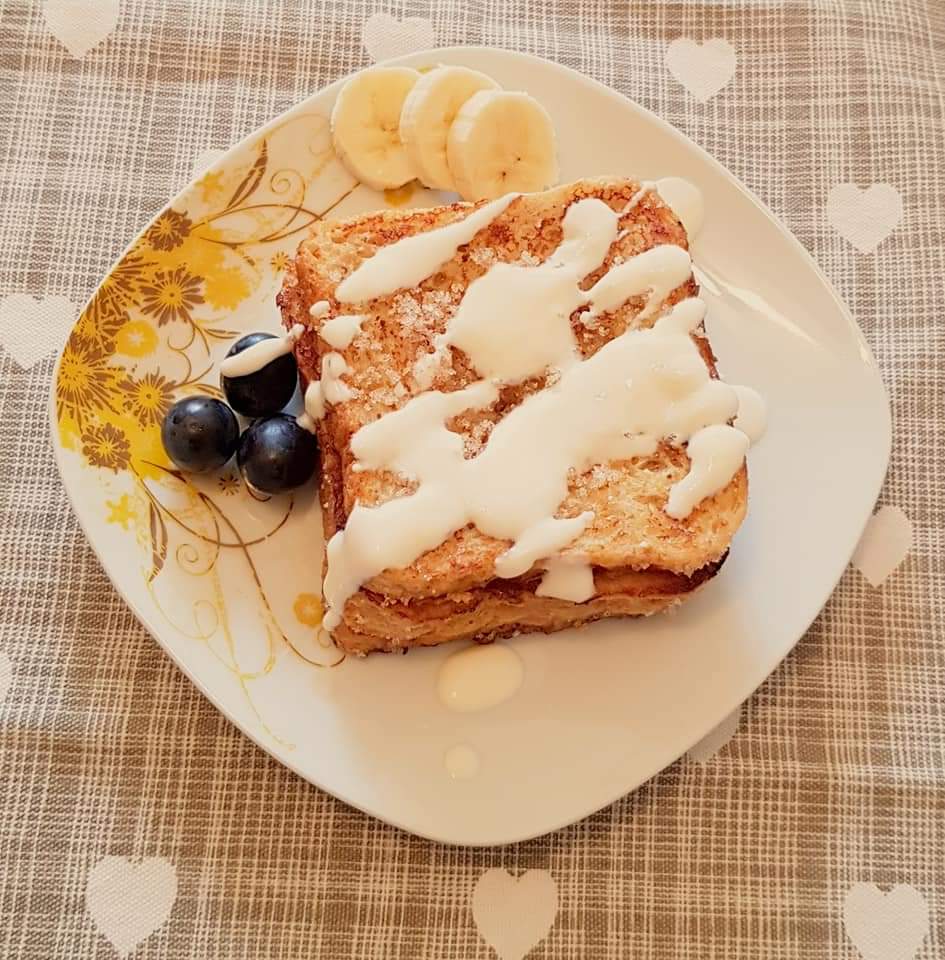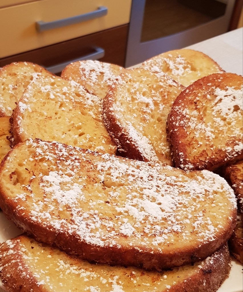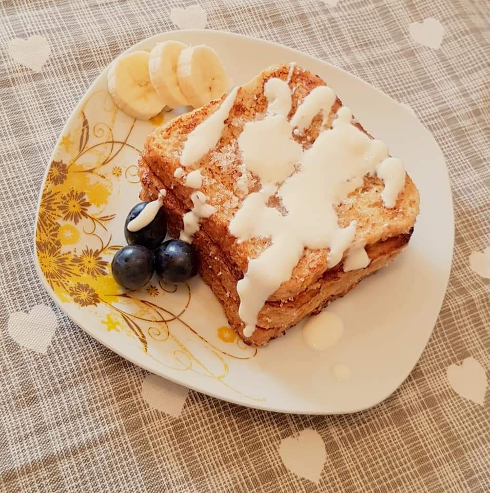 Pe mine pâinea în ou mă trimite cu gândul la copilărie… e mic-dejunul pregătit de mama sau bunica în diminețile de vacanță. Un mic-dejun mereu dulce pentru că tot timpul era presărată cu zahăr tos din abundență și însoțită de ceaiuri dulci 😊 Pe blogul meu veți găsi mai multe variante ale acestui mic dejun delicios. În acest articol o să vă prezint varianta care mă trimite cu gândul la copilărie, îmbunătățită cu un strop de esență de vanilie și puțină smântână pentru gătit.