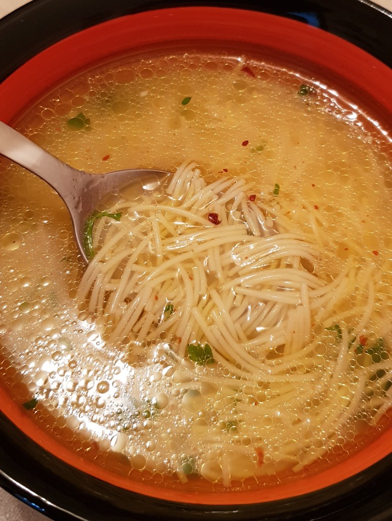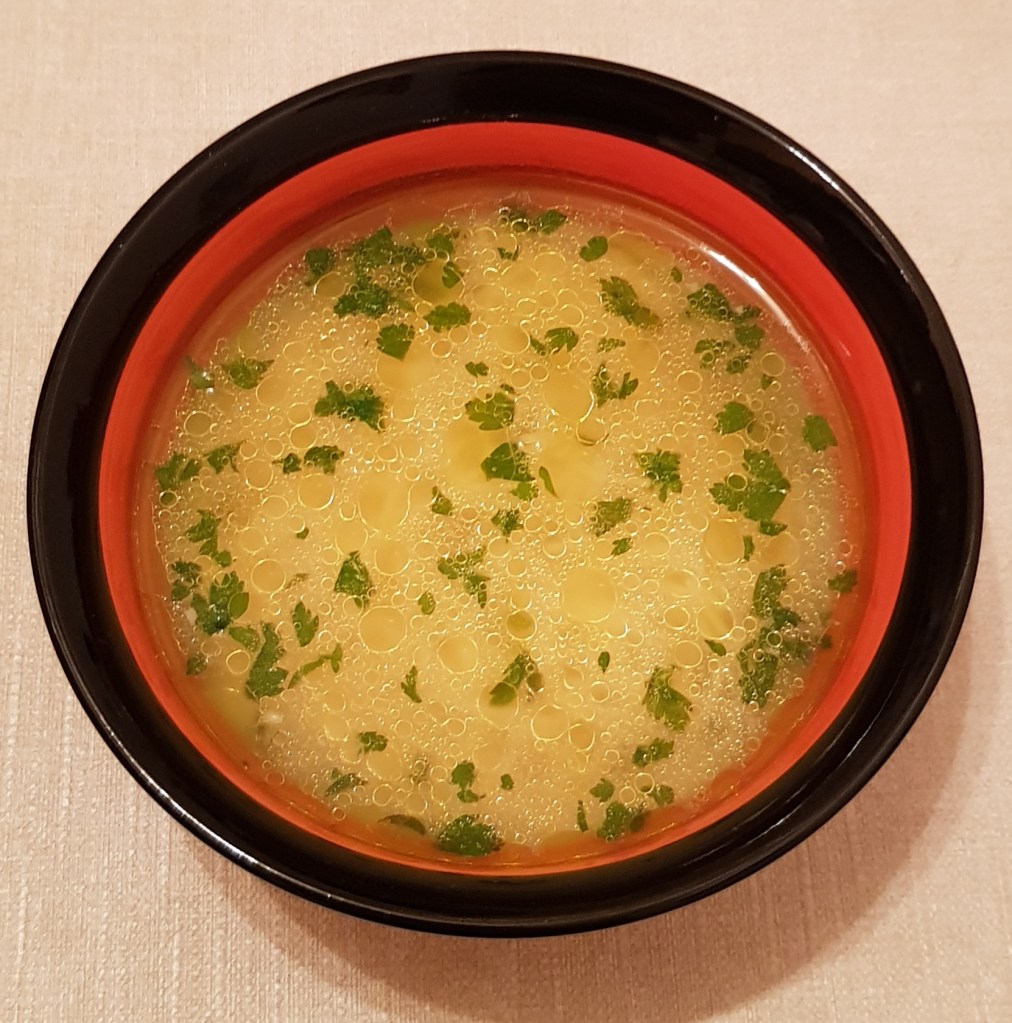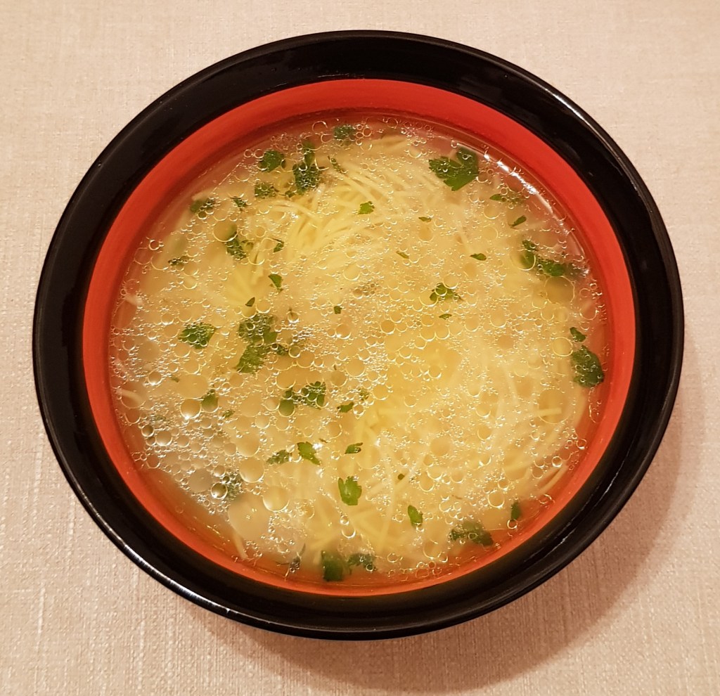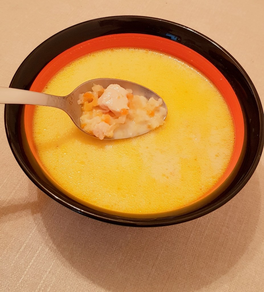 Se pune într-o oală apă la fiert. Eu am făcut o ciorbă mai mică și am folosit un singur piept de pui mai micuț, fără os, pe care l-am tăiat cubulețe și l-am pus în apă când apa a început să dea în clocot. Am strâns spuma cu ajutorul unei palete cu găuri. Morcovii, pătrunjelul și rădăcina de țelină se curăță, se spală apoi se dau pe răzătoare. Eu am folosit un robot de bucătărie. Se călesc legumele într-o cratiță cu cele 3 linguri de ulei până se înmoaie puțin. Apoi se pun la fiert în oală alături de pieptul de pui. Se adaugă sare în funcție de preferințe, eu am adăugat 2 lingurițe. Se lasă la fiert la foc mediu. Când sunt fierte carnea și legumele se adaugă orezul spălat în prealabil în 3 ape. Când orezul este fiert se stinge focul și se lasă puțin la răcorit. După aproximativ 30 de minute se prepară un amestec din galbenuș de ou și smântână pentru gătit. Apoi se adaugă amestecul treptat în ciorbă. Mai întâi se iau 2-3 polonice de ciorbă și se adaugă peste amestecul de ou și smântână pentru gătit. Se amestecă și se toarnă amestecul în ciorbă, treptat amestecându-se ușor pentru omogenizare. Se adaugă opțional sucul de lămâie și pătrunjelul verde. Eu nu am pus pătrunjel verde pentru că băiețelul meu o preferă „fără frunze” 😊