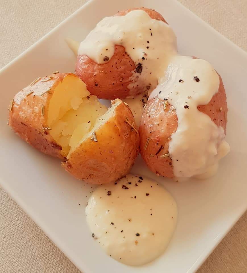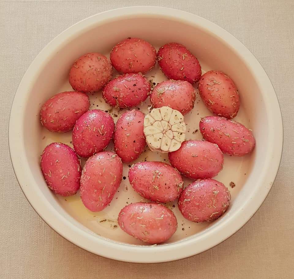 Cartofii noi copți cu usturoi și cozi de ceapă verde sunt delicioși alături de o salată de crudități sau împreună cu diferite sosuri 😋