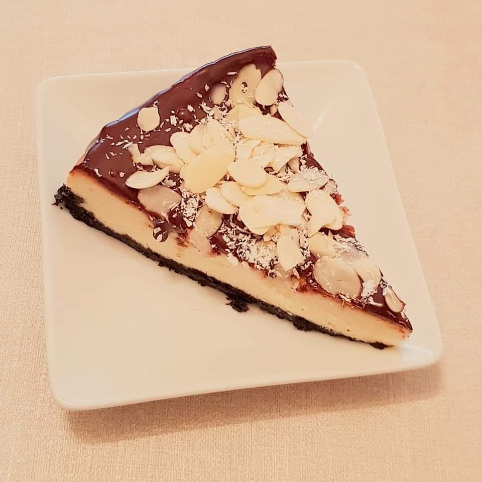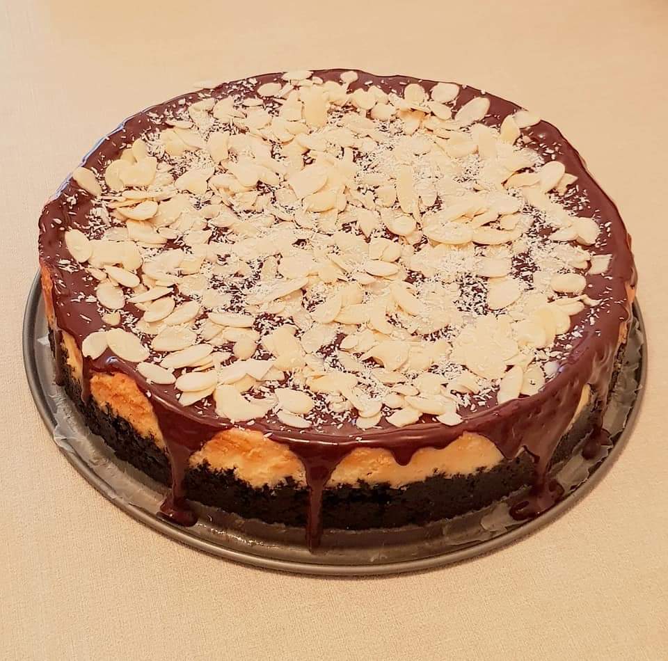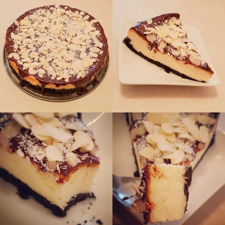 Între timp se prepară crema. Într-un bol se amestecă mascarponele, crema de brânză, zahărul pudră, ouăle și amidonul. Se mixează cu ajutorul unui mixer până se obține o compoziție cremoasă și omogenă. Apoi se adaugă 3/4 din afine și se amestecă cu o spatulă.