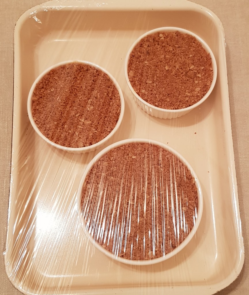 Pentru blatul de biscuiți se topește untul. Biscuiții digestivi se zdrobesc cu ajutorul unui robot de bucătărie. Într-un bol se amestecă biscuiții cu untul topit și cacao. Amestecul obținut se pune într-o tavă tapetată cu hârtie de copt (opțional) și se nivelează frumos cu o lingură.